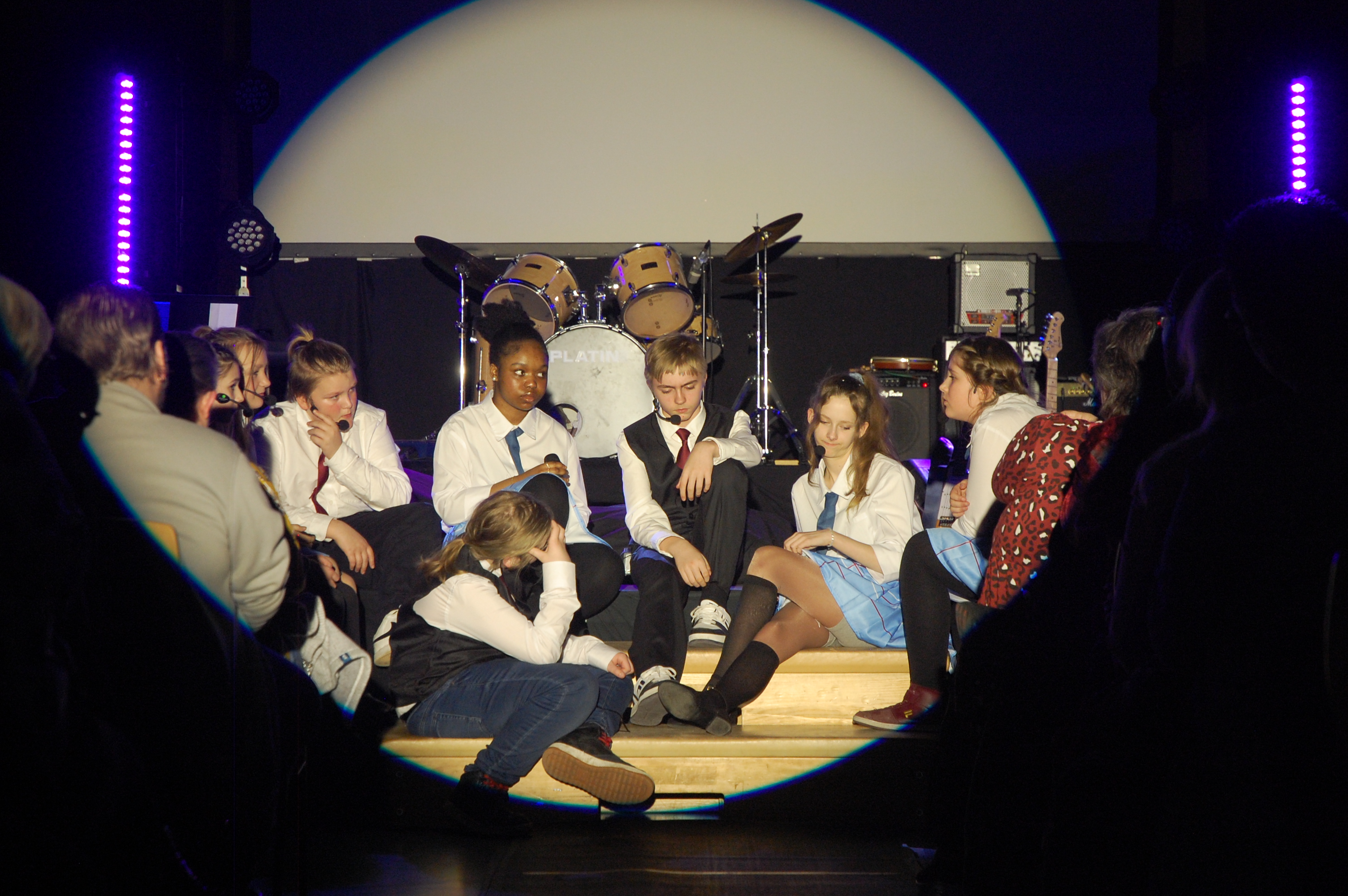 Nicht nur an diesem Abend im Musical, an der Gesamtschule Nord haben Musik und Kunst als wählbare Schwerpunktfächer grundsätzlich eine herausgehobene Bedeutung, wie auch im Leitbild der Schule und im Schulprogramm nachzulesen ist. „Musikunterricht an der Gesamtschule Nord, das heißt auch immer: Musik machen“, so Pappe. Schlagzeugspielen, Keyboard, Gitarre, Bass und Singen sind von Beginn an zentraler Bestandteil des Musikunterrichts, in dem das Musizieren am Instrument im Vordergrund steht, d.h. schon mit Beginn des 5. Jahrgangs, dessen Schüler:innen sich bereits am Donnerstag Mittag bei einem separaten Konzert erproben und erfahren durften, was es bedeutet, sich auf ein großes Ziel vorzubereiten und schließlich auf der Bühne zu präsentieren.