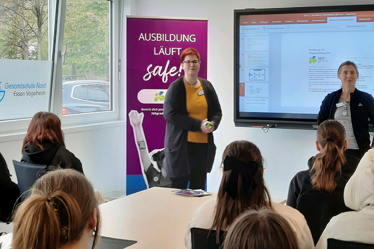 Teilgenommen haben jeweils 15-20 Schüler:innen aus den Jahrgängen 9 und 10. Dabei erhielten sie interessante Informationen über die jeweiligen Ausbildungsberufe, teilweise unterstützt durch Videos und Live-Berichte von Auszubildenden.