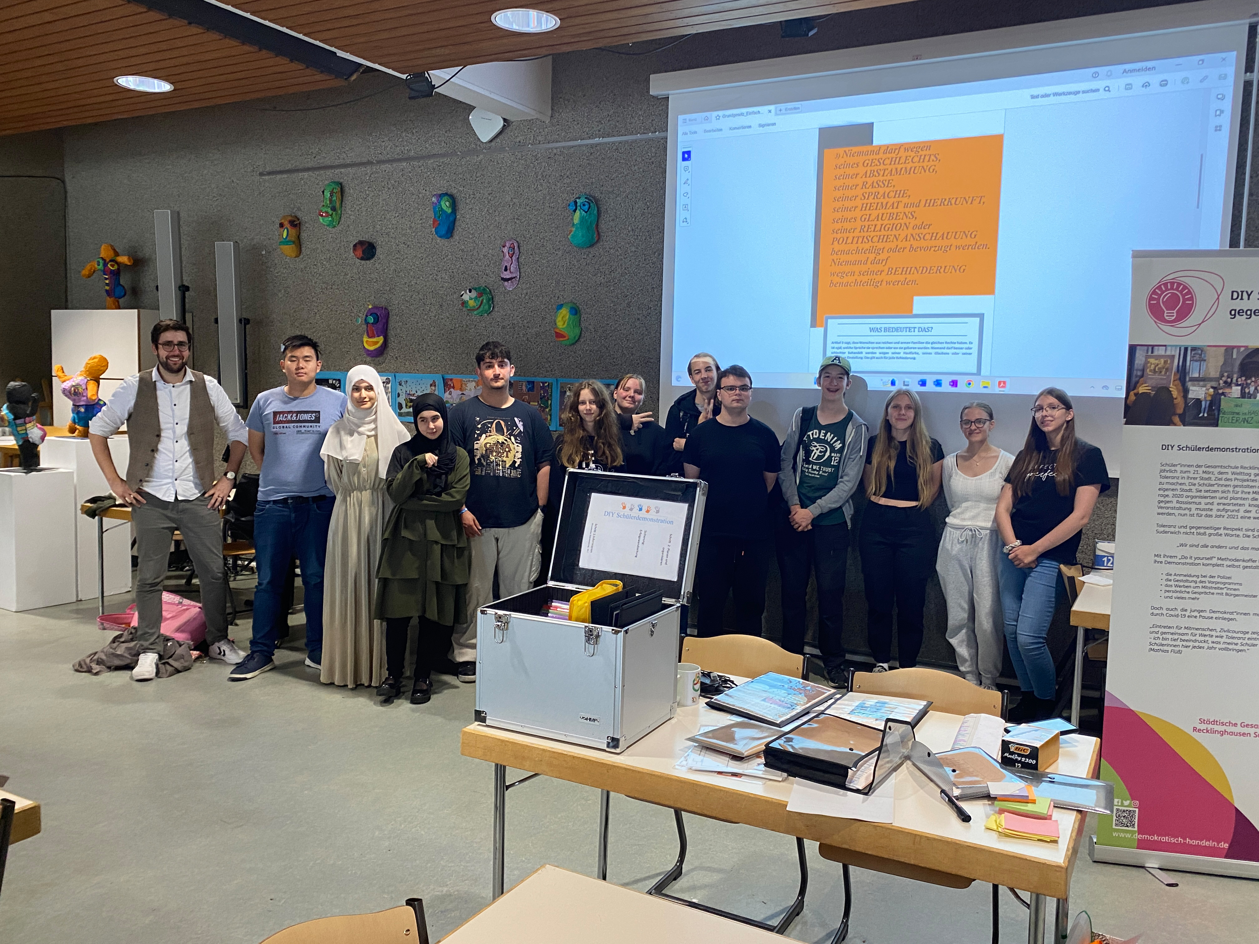 Im Rahmen der #Talenttage Ruhr fand am 13.09.23 in der Gesamtschule Nord der Workshop „Do it yourself – Wir planen eine Demo gegen Rassismus“ statt. 23 Schülerinnen und Schüler aus den Jahrgängen 7 bis Q2 beschäftigten sich einen ganzen Tag lang mit der Frage: Was kann man dagegen unternehmen, dass Menschen immer noch aus unterschiedlichsten Gründen diskriminiert werden?