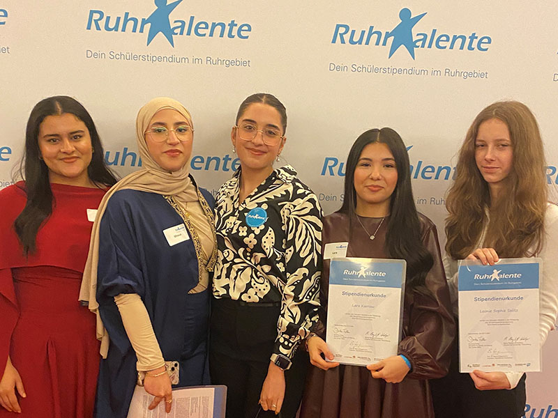 Am Mittwoch, 20.11.2024 erhielten in der Essener Lichtburg 160 neue #RuhrTalente ihre Urkunden. Dabei waren auch vier Schülerinnen der Gesamtschule Nord. Im Rahmen einer gelungenen Aufnahmefeier mit Musik, Tanz, Videos und Interviews wurden die Urkunden von der Bildungsministerin des Landes NRW Dorothee Feller überreicht.