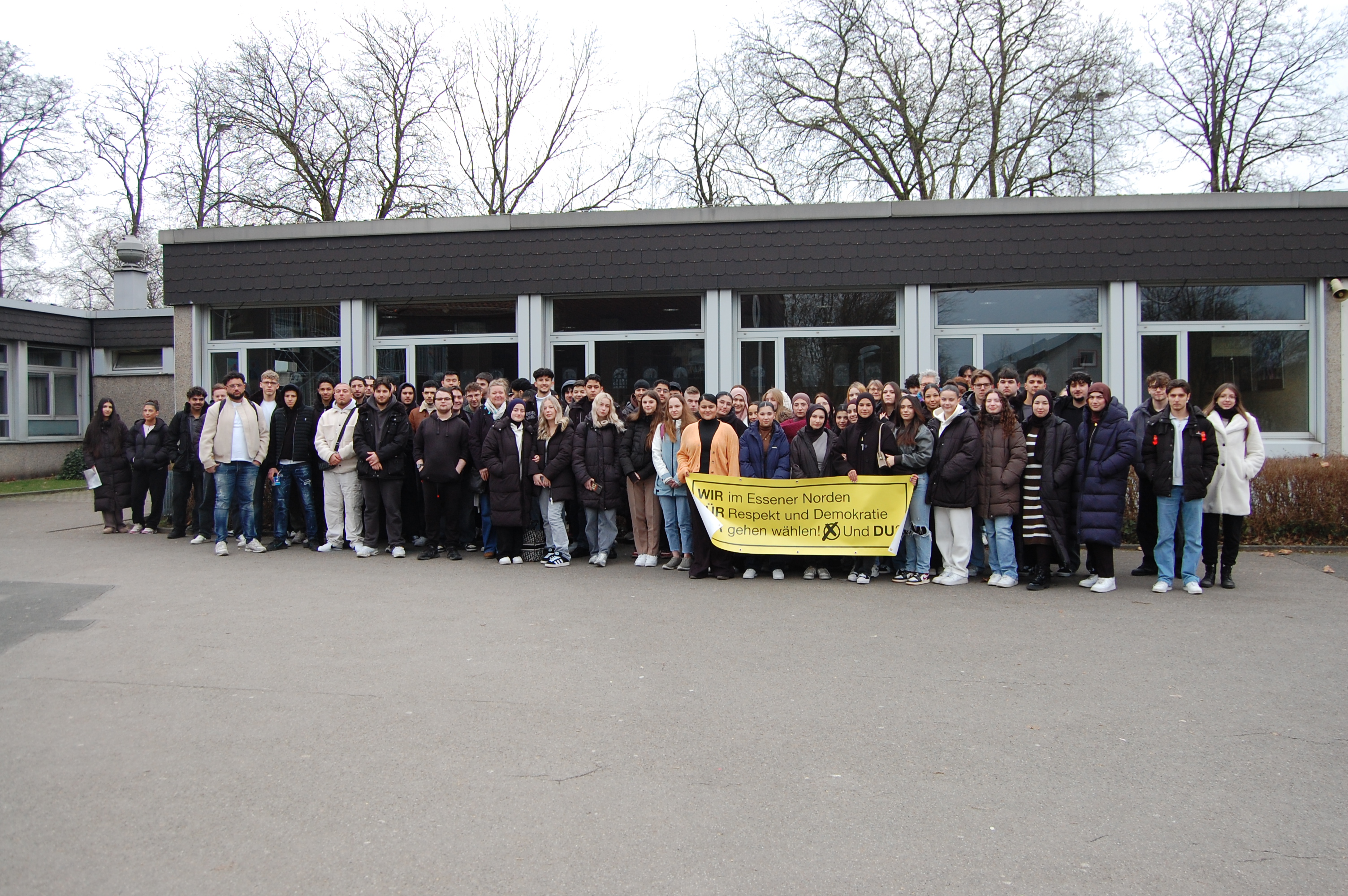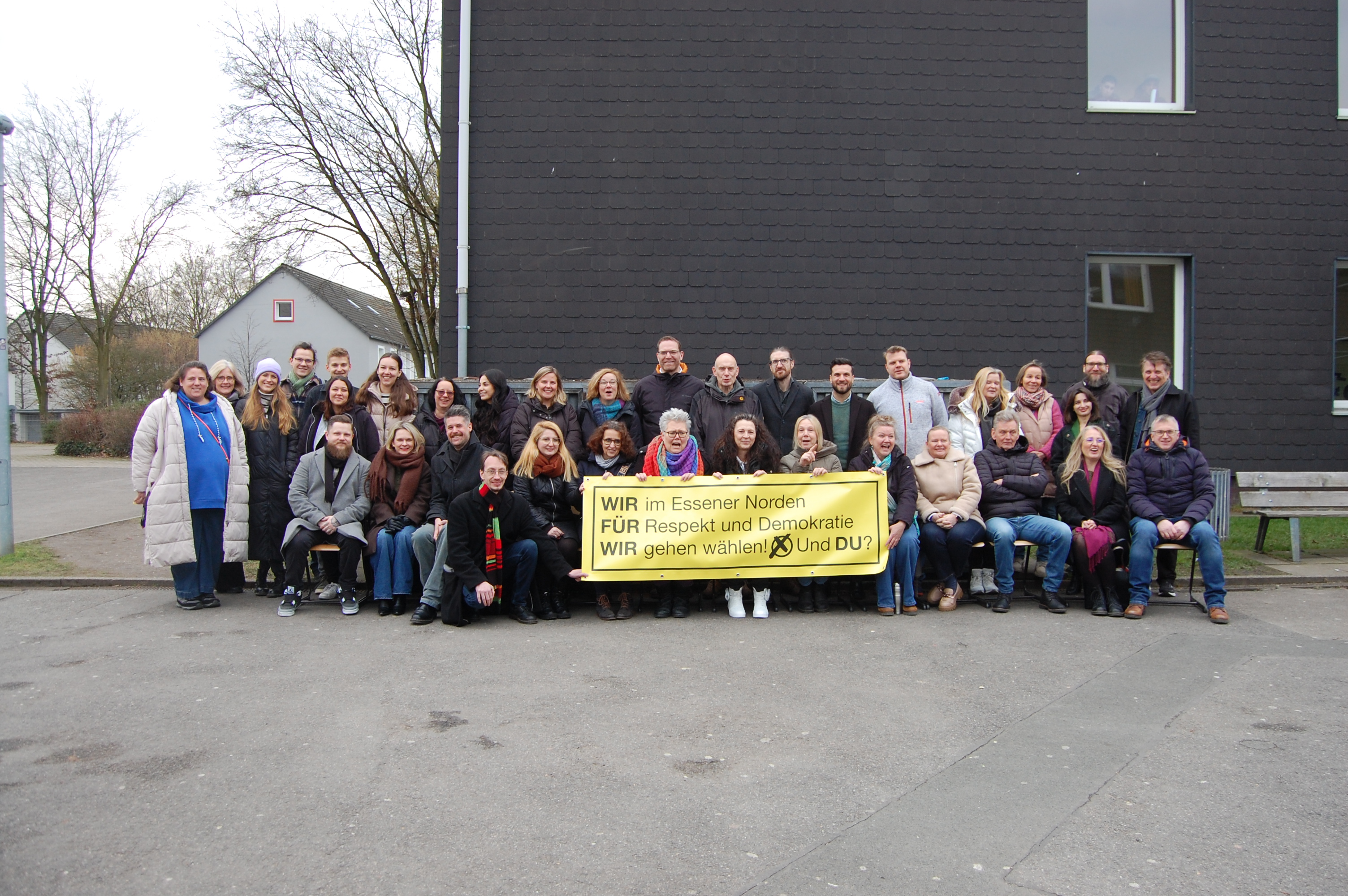 Mit dem Slogan „Wir im Essener Norden. Für Respekt und Demokratie. Wir gehen wählen! Und du?“ wird für eine höhere Wahlbeteiligung Werbung gemacht.