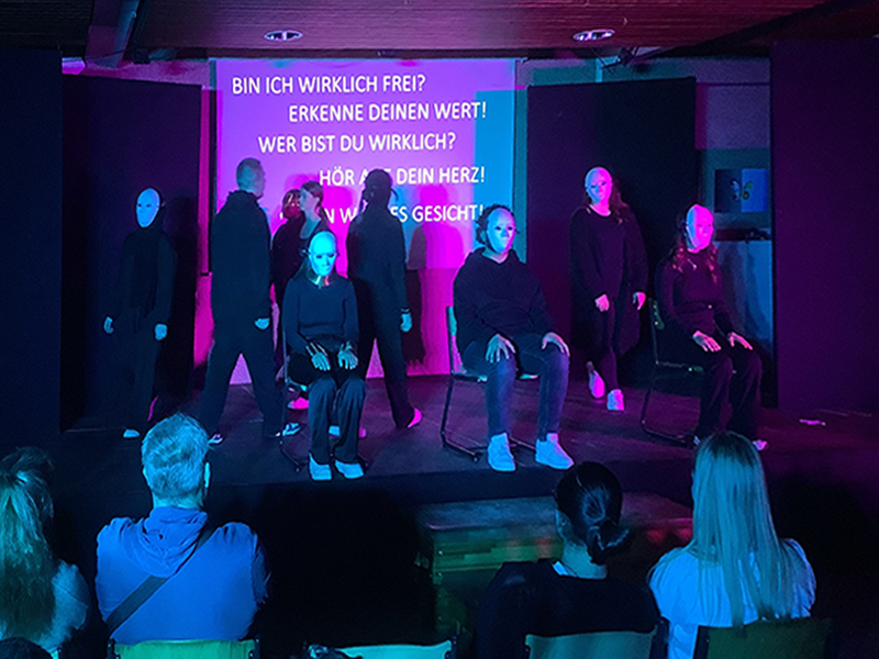 Die Darsteller des Literaturkurses spielten die Rollen des selbst geschaffenen Werkes allesamt äußerst überzeugend und verdienten sich die Anerkennung des Publikums an diesem Abend, welche in einem lange anhaltenden Applaus ihren Ausdruck fand. Engagierte Unterstützung im Hintergrund fanden sie in den Schüler:innen des Technikteams der Schule.
