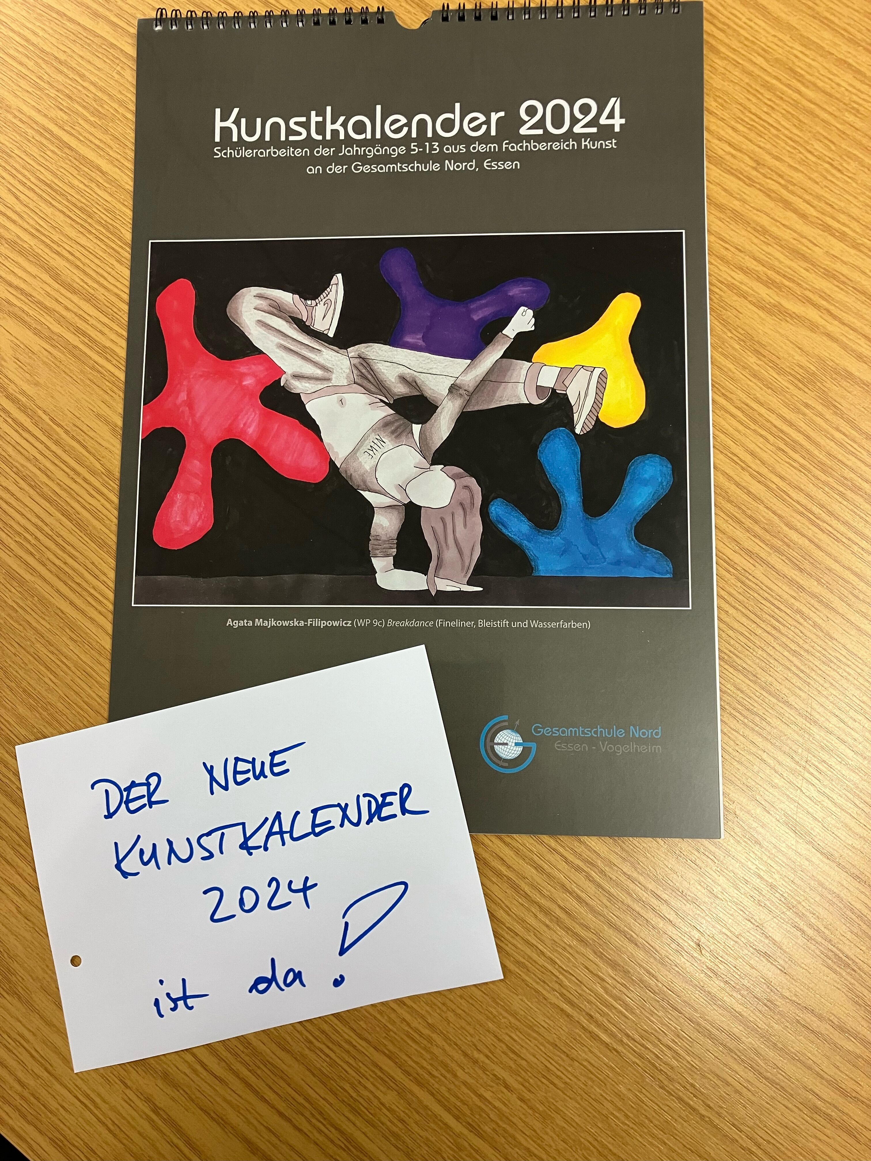 Für 5 Euro erhaltet ihr den Kalender bei den Kunstkolleginnen und - Kollegen oder im Sekretariat.