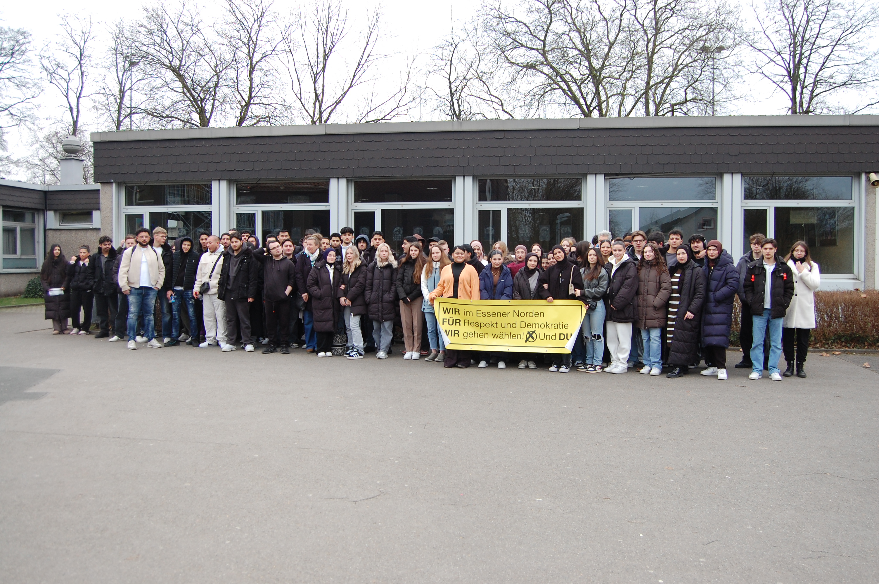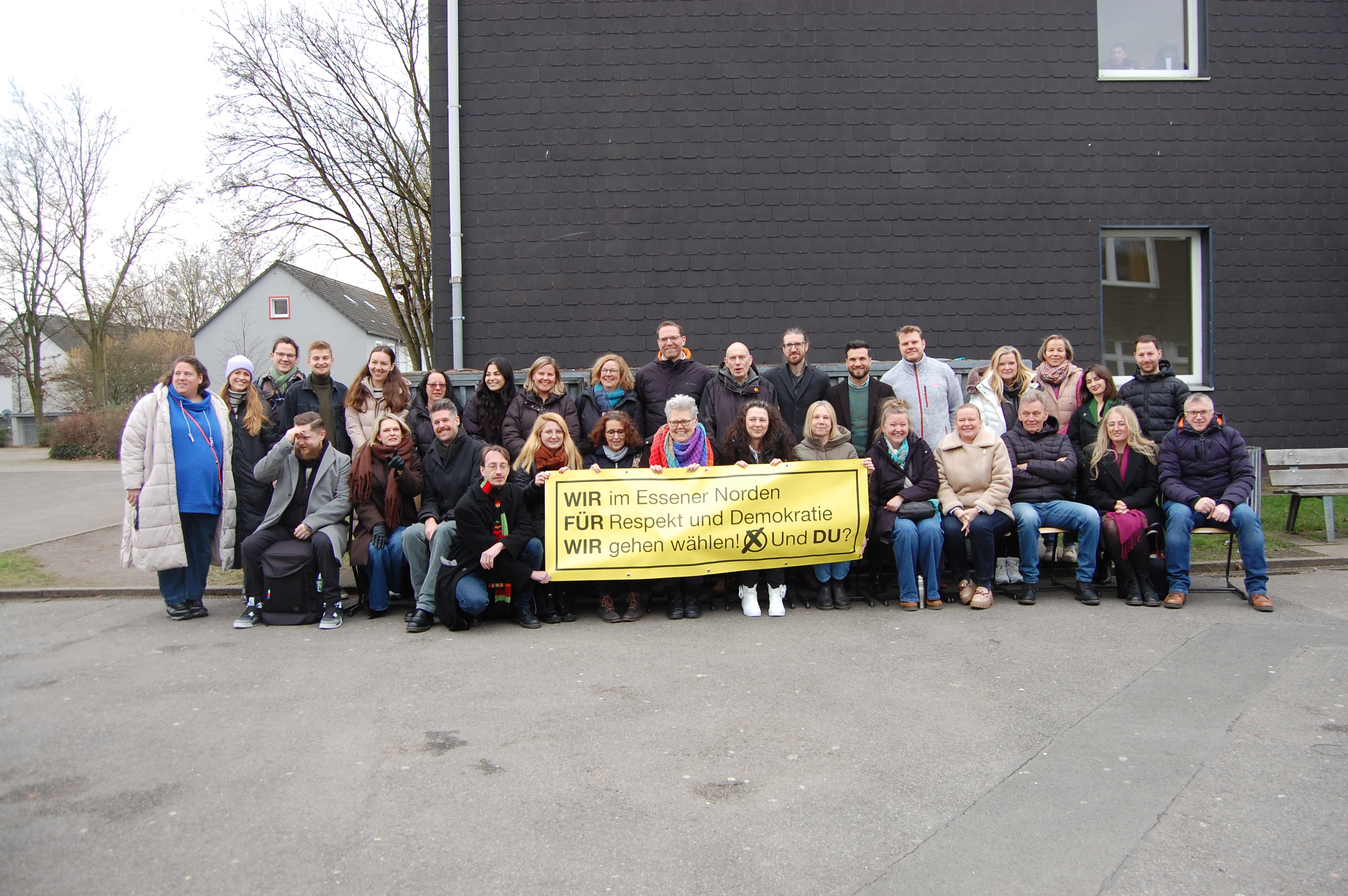 Mit dem Slogan „Wir im Essener Norden. Für Respekt und Demokratie. Wir gehen wählen! Und du?“ wird für eine höhere Wahlbeteiligung Werbung gemacht.